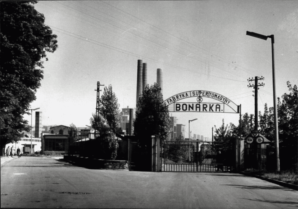 Димарі з’явилися в Бонарці на зламі ХІХ-ХХ століть коли відкрився цементний завод, оснащений двома обертовими печами довжиною 50 метрів. Після війни старе заводське обладнання, яке простояло кілька років, було оновлено та адаптовано до нової технології. Таким чином, не було строкатих торгових пасажів, спокусливих вітрин з асортиментом, салонів краси чи парків розваг. Проте були люди, які, як і сьогодні, прийшли сюди на шопінг.