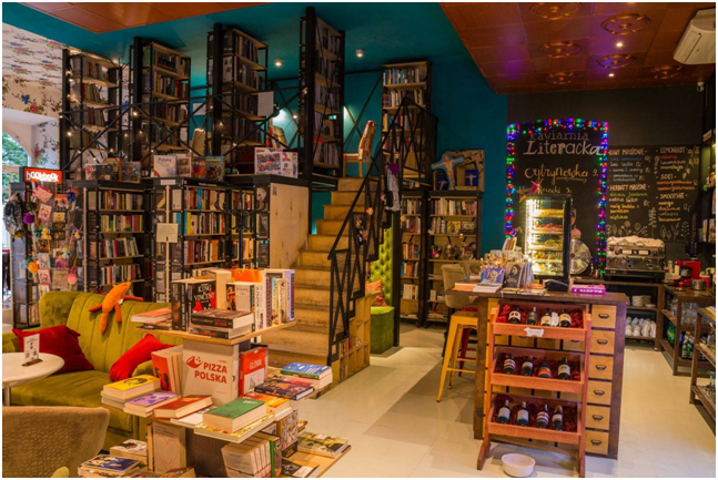 “Літературна кав’ярня” у місті Краків водночас є книгарнею та громадським центром, ідеальним для тих, хто хоче читати, спілкуватися та проводити час із користю. Там часто проходять зустрічі з авторами, іноді навіть по дві одразу, місця у залах вистачає. Головна зала приваблює унікальним дизайном, його створили спеціалісти театру “Proxima Newy”, який розташований в одній будівлі з кав’ярнею-бібліотекою.